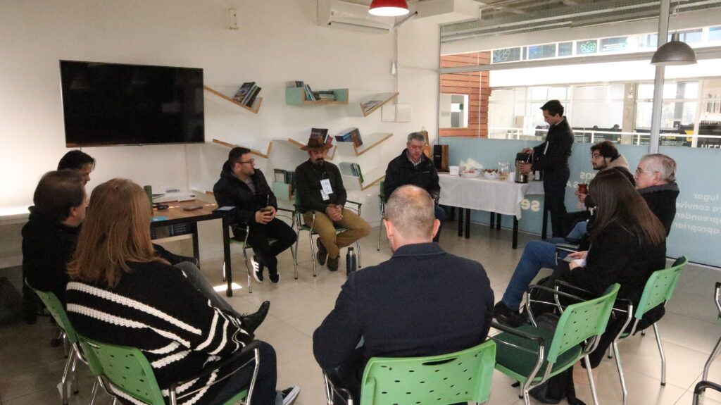 Ainda sobre o Ecossistema Local de Inovação, foram apresentados os atores e habitantes do ELI e a manhã finalizou com uma roda de conversa sobre o assunto, onde os participantes compartilharam suas experiências e trouxeram ideias e sugestões sobre o desenvolvimento da região. Para exemplificar o processo de desenvolvimento de uma cidade para a inovação, Rafael Bechelin trouxe a experiência junto do Pacto Alegre – um movimento de aceleração territorial realizado em Porto Alegre, no Rio Grande do Sul e que deu origem ao Instituto Caldeira, onde a sua empresa Gov.Up está atualmente incubada.