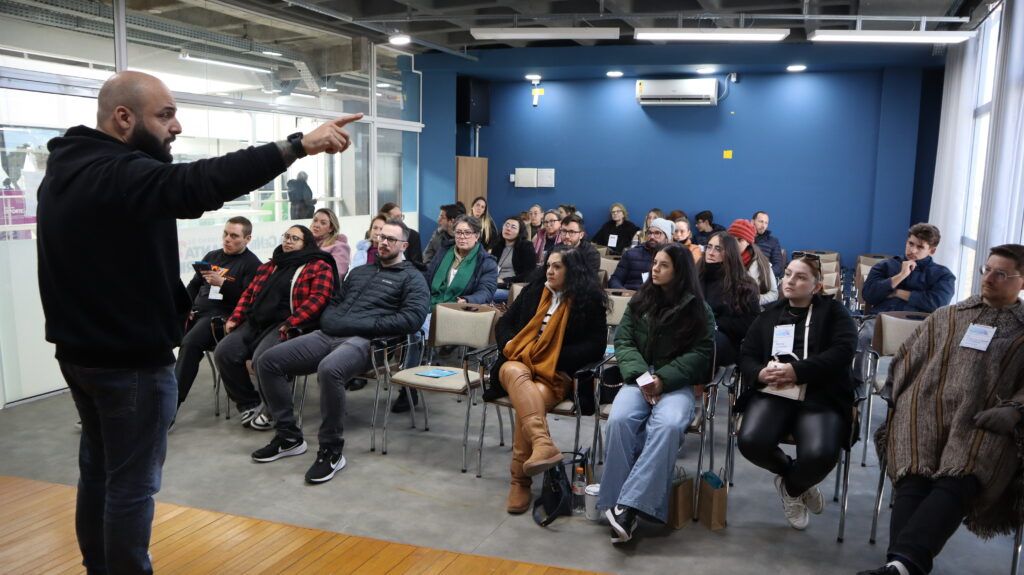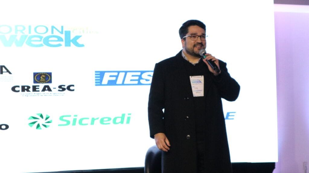 A palestra de abertura com o especialista Elkin Echeverri trouxe o tema “ Hackear sua Cidade: Inovação e redes, a maneira mais poderosa de mudar sua qualidade de vida” startou a semana em celebração ao aniversário do Orion que na verdade, iniciou na manhã gelada da terça-feira. Com uma programação intensa, a manhã iniciou com a Reunião de GTs do Ecossistema Local de Inovação (ELI) e seguiu com uma capacitação sobre fundamentos do Ecossistema de Inovação com Gabriel de Borba Neto.