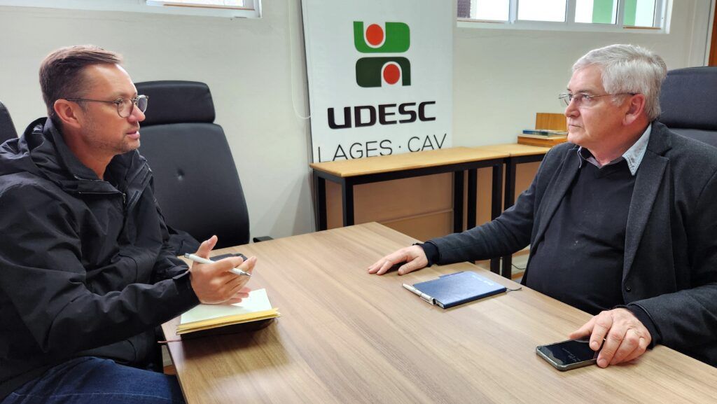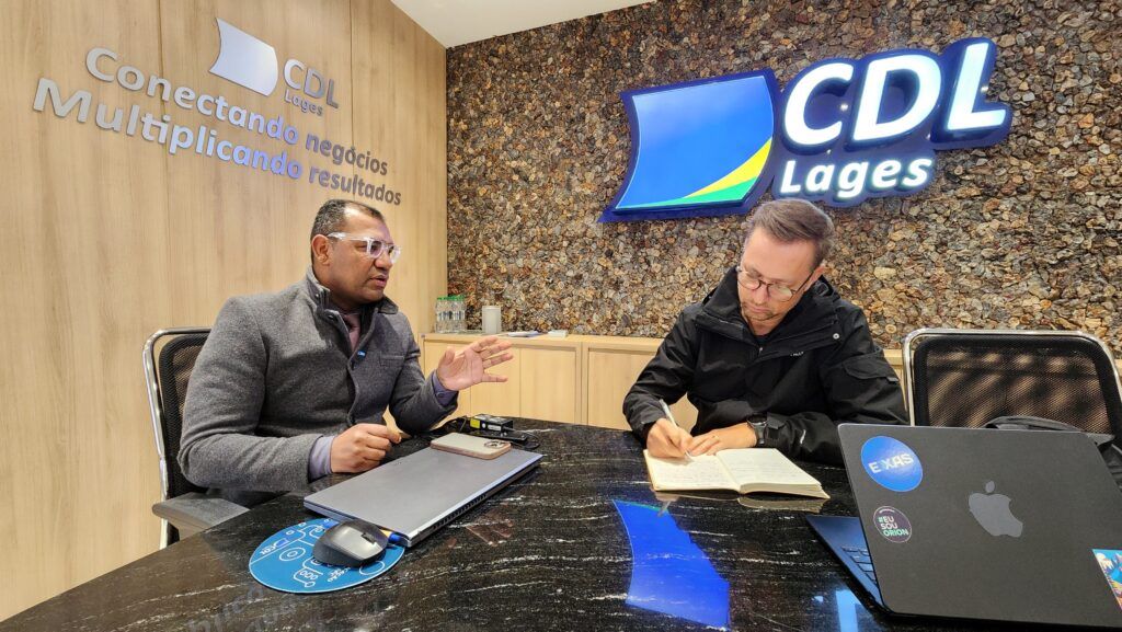 Encerrando a etapa presencial, ele conversou com o diretor do Centro de Ciências Agroveterinárias da Universidade do Estado de Santa Catarina (CAV Udesc), professor André Thaler Neto; o diretor da Câmara de Dirigentes Lojistas (CDL Lages), Jhonathan Silva; e o diretor do Grupo SCC, Roberto Amaral.